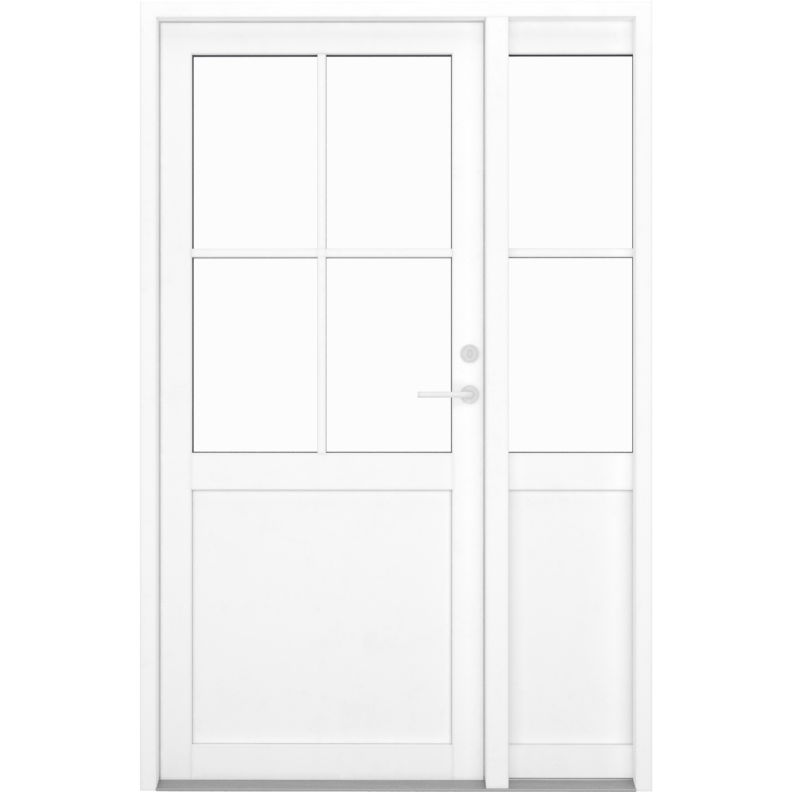 Ved køb af facadedørsparti er sidepartiet minimum 32 cm bredt. Desuden er sidepartiet altid placeret på modsatte side af dørens hængsler.